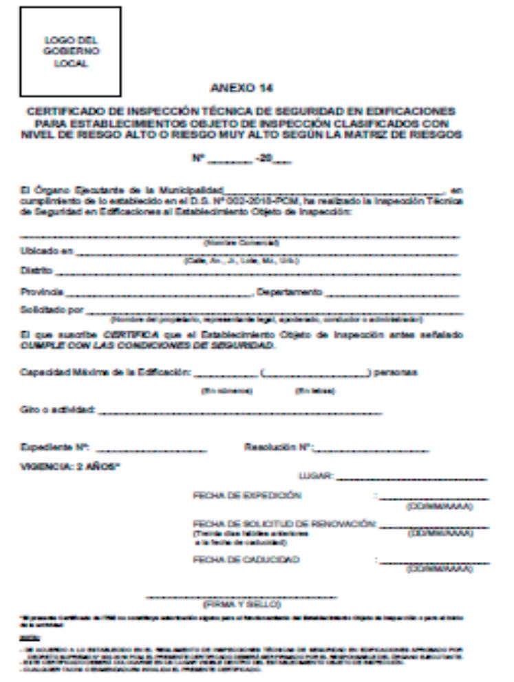 CERTIFICADO DE INSPECCIÓN TÉCNICA DE SEGURIDAD EN EDIFICACIONES: Documento en el cual consta que el Establecimiento Objeto de Inspección cumple con las condiciones de seguridad.