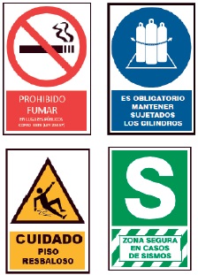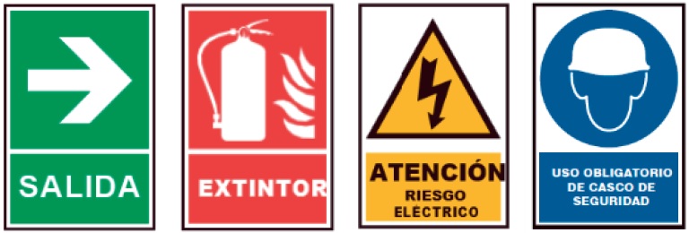 Las señales de seguridad nos transmiten una comunicación del riesgo, una emergencia, una advertencia, una obligación, una información general, una prohibición, lucha contra incendios, etc.
